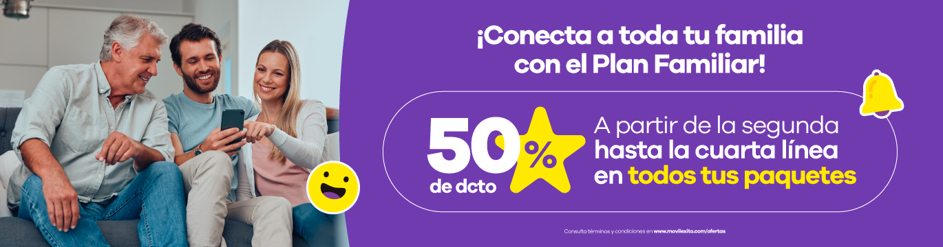 El Plan Familiar es un beneficio mediante el cual el cliente obtiene un 50% de descuento en el valor del paquete desde la segunda hasta la cuarta línea, siempre y cuando todas las líneas se recarguen dentro de la misma transacción y con el mismo paquete.